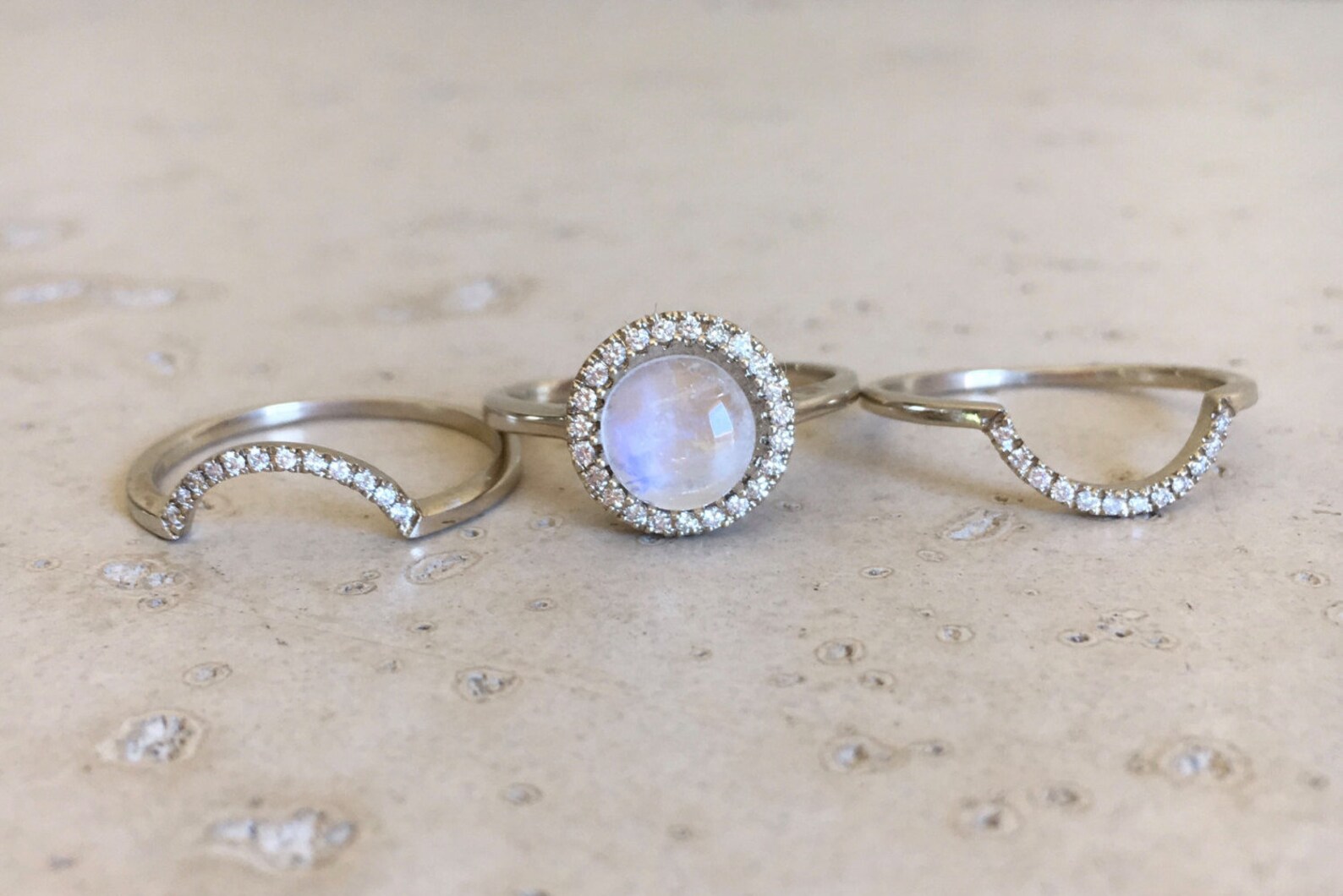 10. Halo Moonstone Rose Gold Set