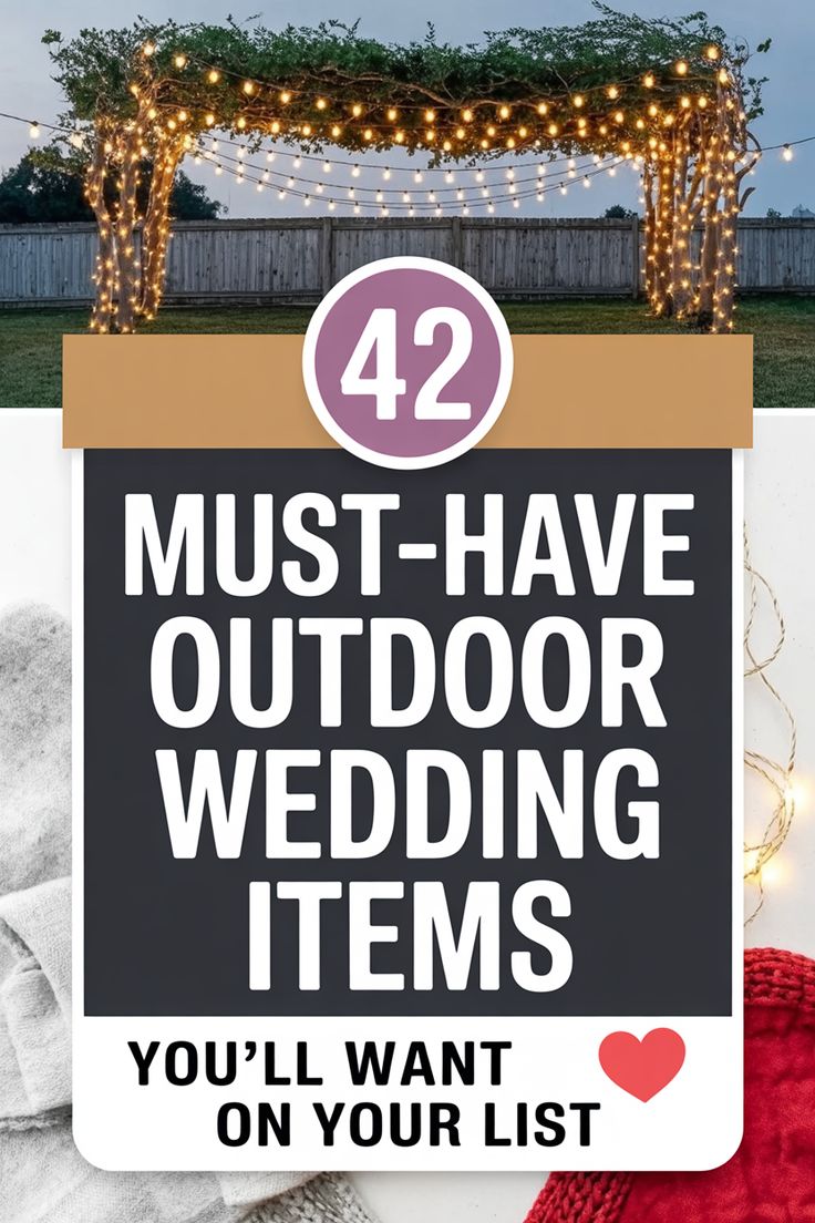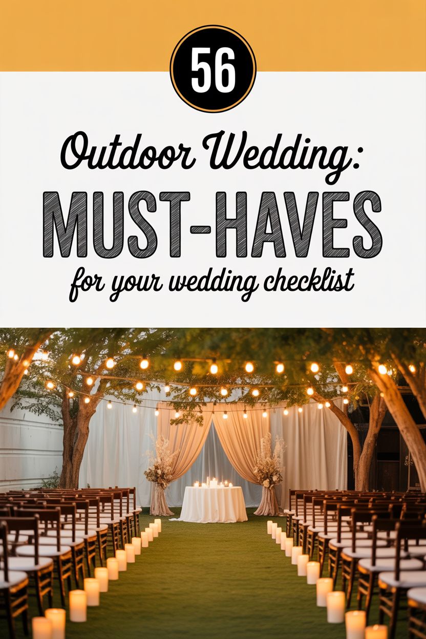 PinWe hope this list helps you plan your outdoor wedding just a little bit more. If you need additional help ticking off other wedding planing checklist items, see our even bigger Ultimate List of things to buy for your wedding!