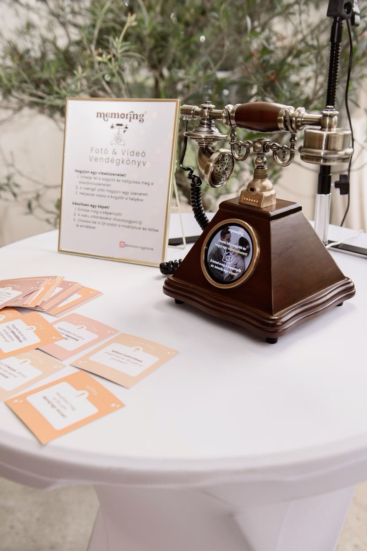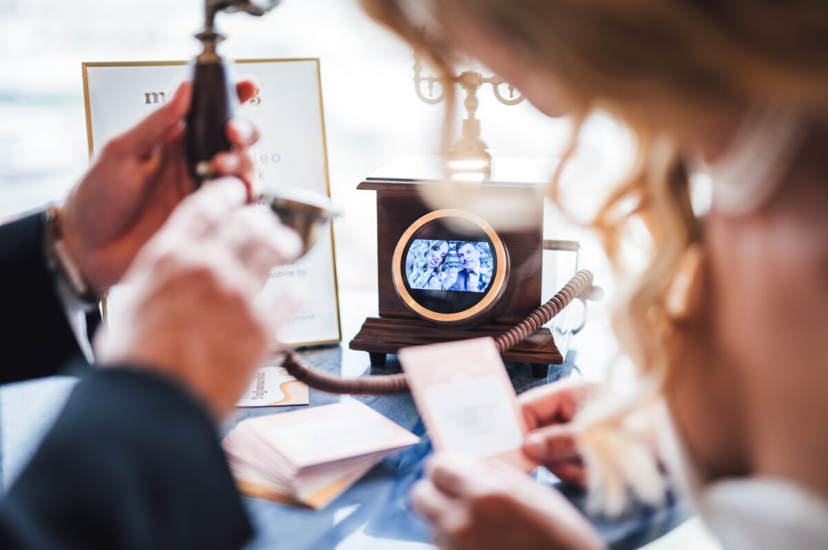Memoring = an antique phone with a built-in camera that lets guests take unlimited video messages and photos with custom backgrounds