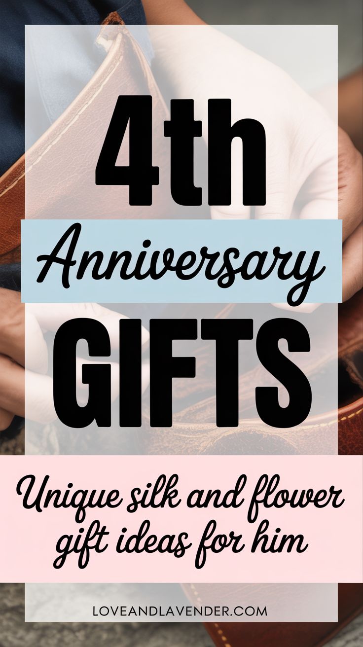 PinI think it is safe to go with that — in the United States the traditional 4th year anniversary gifts are either silk or linen, while the modern 4th anniversary gift is an appliance.
