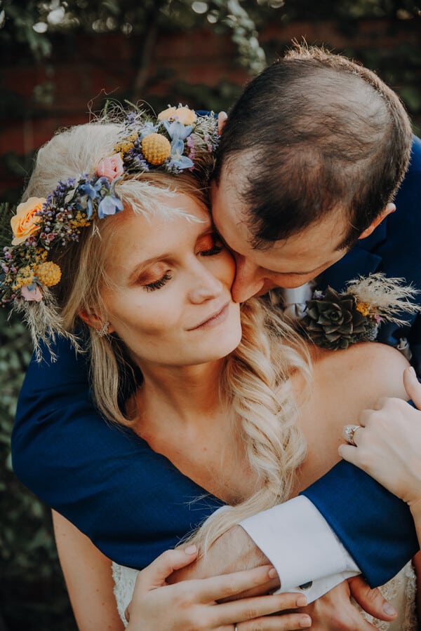 Q1: Tell us about your wedding! “From the moment I was born I have always loved funky, non matchy  things. I would say my inspiration/ theme is boho country. Everyone my entire life has always told me that I “am only person they know that could wear that.” “I planned everything around the bridesmaids dresses. I loved the idea of my bridesmaids wearing different colors/shades and styles of dresses. Blue is the color of my eyes, and photographs so well that I just knew I had to do different shades of blue.” Q2: Let’s talk wedding decor “The venue and my floral were SO BEAUTIFUL that decorations didn’t play a huge part on my wedding day.” Q3: What were the florals like in your wedding? “Floral was everything at my wedding. When I talked to my florist for the first time I told her I wanted every funky colored flower she could think of,  and  I wanted my bouquet to be big and wild. Everything was covered in flowers. Floral made my wedding what it was.” Q4: Did you personalize the day in any way?” “I gained an angel boy step son and I loved doing a gift exchange with him. He gave me a ring, I gave him a necklace.” Q5: Let’s talk fashion “I wanted a classic wedding gown since my floral (bouquet & flower crown) were so vibrant. I bought the first dress I tried on.” Q6: How did you meet? “A mutual friend set Will and I up. I know this sounds super cheesy but we knew after date 1 this was the real deal. It was Christmas time… Will, Tristan, and I were opening gifts together. I opened a candle (Tristan and I’s favorite thing to shop for) on the candle was a picture of all of that said “Will you marry us?” IT WAS PERFECT.” Q7: What was the most anticipated or special moment of your wedding day? “SEEING WILL’S FACE WHEN I WALKED DOWN THE AISLE. “He said he wouldn’t cry.”  :-) Q8: Do you have any wedding planning or marriage advice that you’d like to share with other couples planning their day? “Relax!!! Spend money on floral, venue, and photography. “Be different.”
