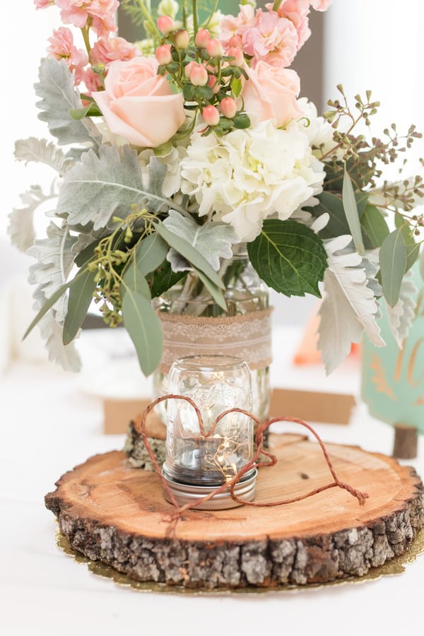 Q: Tell us about your wedding! "I wanted my wedding to have a spring feel to it so I chose mint and peach as my two main colors, and added a rustic feel to it using wood centerpieces, and designs." Q: Let’s talk wedding decor "As mentioned before, I had a rustic theme to my wedding. I used mason jars and wood for my centerpieces, which were both DIY." Q: What were the florals like in your wedding? "Such as my wedding being light and airy, I also wanted to use an array of spring floral. Overall, they were my favorite touch in the wedding." Q: Did you personalize the day in any way? "I had my own photo booth which was DIY by using a curtain as my backdrop, and provided cameras/props for the guests to use. Q: Let’s talk fashion "I searched Pinterest for my initial ‘look’ then went to David’s Bridal to find my dresses. I had my mother in laws pearls for my ‘something borrowed’. Also ordered my shoes off of eBay!" Q: How did you meet? "Bob and I met on an online dating website, but soon found out we had a ton of mutual friends, and grew up in the same area. "Our proposal wasn’t as traditional as most because we had already been together for quite some time, and had a child together. He had been looking for the perfect ring. We were sitting on the couch watching one of our favorite programs, and just asked out of the blue ‘Can I ask you something?’ Of course I said yes…thinking it was going to be nothing. Then he asked the big question and showed me the antique Tacori ring." Q: What was the most anticipated or special moment of your wedding day? "My most anticipated moment was our first look. This was by far my favorite moment of the day because it gave us a few minutes to share something so personal between just the two of us, and our son before the hustle of the day." Q: Do you have any advice to share with other couples planning their day? "Do not stress! It will all fall together as it is meant to be. The whole purpose of the day is to join together as one. That WILL happen so anything else, whether planned or not, will fall into place."