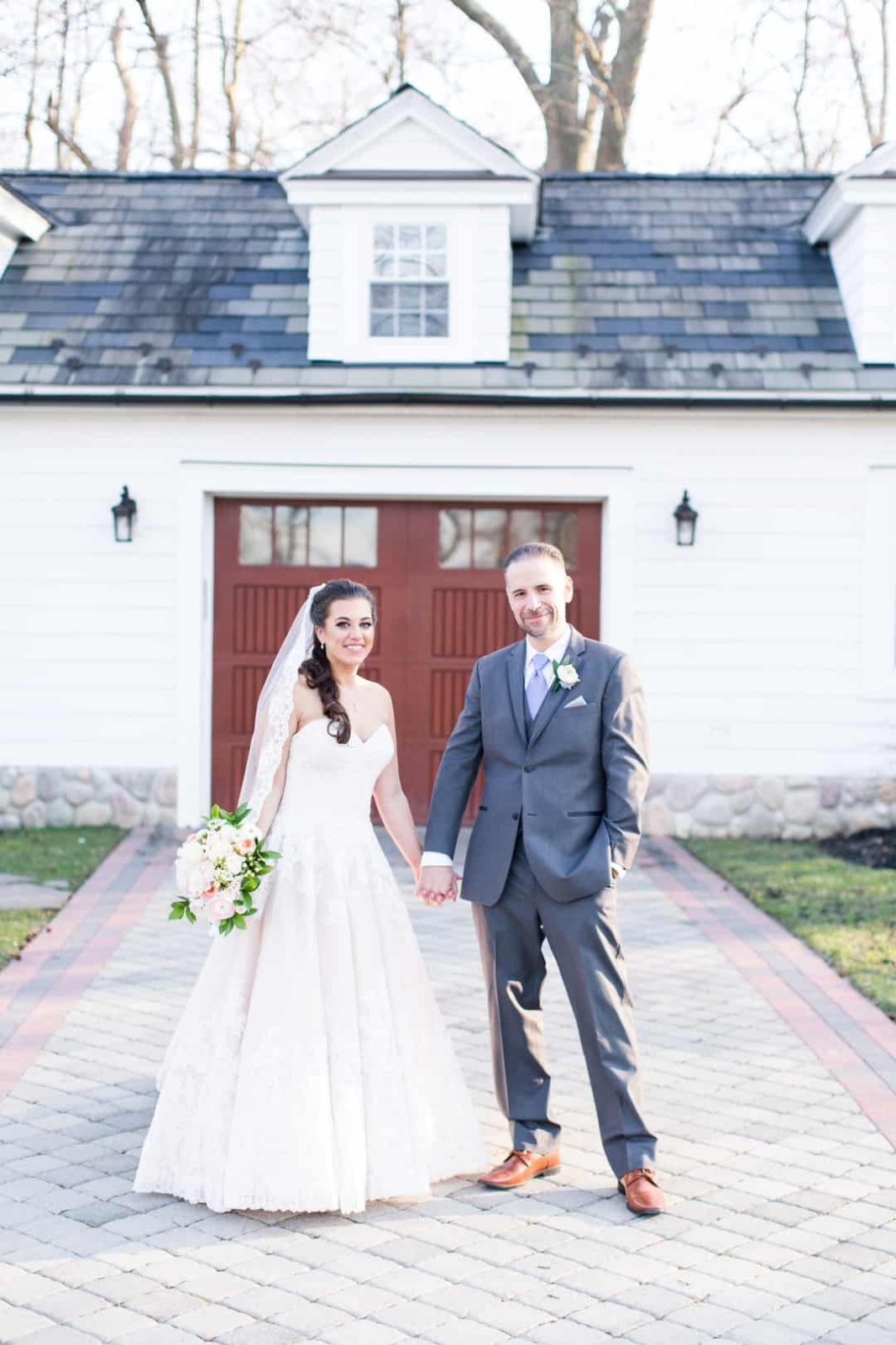 Q: Tell us about your wedding "We tried to incorporate little spring elements as our wedding was early spring. We had wildflower seed paper in the shapes of birds as our favors, and we had little rabbits holding Easter eggs at our head table since the following day was Easter. We also both have a science background – I teach chemistry and Chris works in environmental consulting – and so our table numbers were elements from the periodic table. Cornflower blue was main color in our color palette." Q: Let’s talk wedding decor "My favorite DIY decor item was the seating chart. I used a picture frame and clothespins to hang guest names and table numbers, and left a sign with an Instapix camera instructing guests to take their name and replace it with a selfie. We got some really cute pictures from that!" Q: What were the florals like in your wedding? "My friend, Rachael Kenney, did the flowers for us. She did an amazing job and featured a lot of ranunculus in the bouquets. She also incorporated some blue hydrangea into the vases and Chris’s boutonniere in memory of Chris’s mom – it was her favorite flower. Rachael also added some flowers to our wedding cake. I had just given her a couple pictures of things I liked and let her do her own thing. I love how they all turned out!" Q: Did you personalize the day in any way? "We had a craft beer station at the ceremony with beer from our favorite local brewery, Jughandle! My favorite part was the band – Brian Kirk and the Jirks. I chose the wedding date around when they were available…they were amazing!" Q: Let’s talk fashion "My aunt owns Antoinette Rose Bridal, so I went to her store to try on a variety of dresses. I originally thought that I wanted a fit and flare dress, but they had me try the Morilee 2674 ballgown and I couldn’t imagine wearing anything else. I wish I could wear it every day! Chris knew that he wanted to wear a gray tux, and we coordinated the vests and ties to match the bridesmaids in cornflower blue. The bridesmaids chose their own styles; all of them were Bill Levkoff chiffon in cornflower blue." Q: How did you meet? "We met at work, doing environmental consulting. Chris proposed on a snowy day in January at our new home (we weren’t living in the house yet). We had dinner plans and he insisted on stopping by the house first to show me some paint samples for the master bedroom that he had picked out. We went to see the room and he had painted reasons why he loves me on the wall. He then told me it wasn’t a proposal, just a nice thing he wanted to do to show me how much he loved me. He told me to go look out the window, and down on the deck in the snow it said, 'Marry me?'. I turned around to find him down on one knee with a ring!" Q: What was the most anticipated or special moment of your wedding day? "It was so special having so many of our family members and close friends all together to celebrate with us. I also loved dancing with my dad – he had kept our song a secret and surprised me halfway through the dance by having the band break in to “Drive My Car” by The Beatles, which is a song that reminds me of my childhood with him. The food and the band were amazing. Everything went off without a hitch and I can’t imagine a more perfect day!" Q: Do you have any wedding planning or marriage advice that you’d like to share with other couples planning their day? "Enjoy it! Don’t stress about the little things, it’s not worth it. The day flies by. Also, I’m really glad we decided to hire a videographer (Color Room Films). It’s wonderful having a video to watch to relive the magic."