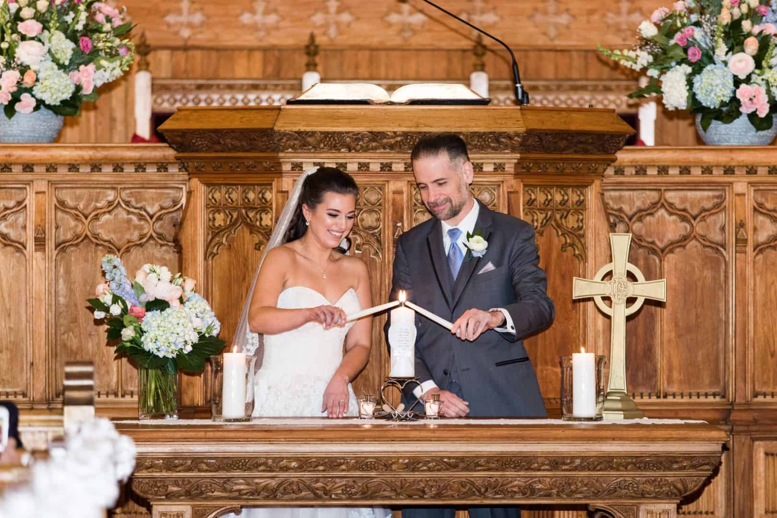 Photographer's Remarks: "Jessica and Chris had sunshine and happiness at their Springtime Wedding. As I entered Jessica’s parents home love, smiles, and beautiful colors filled the room. What a fun bunch! "The girls were hanging out, chatting, having a bite to eat, and overall enjoying each other’s company. Hair and makeup already done, Jessica looked beautiful with her hair curled over her shoulders in a half-up half-down do and makeup that complimented her gorgeous eye color. Rebecca Zagha and Nicole Gougoumis did such an amazing job with dolling the girls up." "From the details of the wedding to the arrangement in the flowers shades of blush pink, pales, and cornflower blue were scattered throughout. The bridesmaids wore long cornflower blue dresses that complimented Jessica’s bow strapped shoes. "After some downtime and conversation, it was time to get Jessica into her dress! She picked out a Morilee (style number 2674) dress from her aunt’s boutique, Antoinette Rose Bridal. My gosh this dress was beautiful and Jessica looked absolutely stunning in it! The dress was made for her, twirling around and showing off the beautiful ballgown, she could not stop smiling." "The Ceremony was about to start, and guests were taking their seats filling up the church quickly. The groomsmen entered from the side door as Chris walked down the aisle to the alter. Chris looked handsome wearing a gray tuxedo and paired cornflower blue socks to match Jessica’s shoes and the bridesmaids dresses. One by one, the bridesmaids walked down the aisle, all the while teasing Chris a little bit. With no first look, this was Chris’s first time seeing his beautiful bride in her dress. Chris had the biggest smile on his face when he caught sight of Jessica. The couple did not lose sight of one another, their eyes remained mesmerized with each other. "Jessica and Chris are such sweethearts and their love is so defined and pure. The ceremony was memorable and organized with speeches from family, friends, and Father Anthony Testa. Cheering and shouts harmonized throughout the church as the bride and groom made their way down the aisle together hand in hand as husband and wife. Exiting the church the guests blew bubbles for Jessica and Chris to walk through and stop for a few photographs. It was a remarkable ceremony! Sunshine led the way as we headed to the reception." "Their reception was held at The English Manor. Before entering we had to pause to take a few bridal portraits outside The English Manor, because the sun was in the perfect spot. Picture perfect couple, Jessica and Chris were glowing after their ceremony. Chris eager to get some food in his belly, we made our way inside the reception hall. The energy in this room was incredible! "The live band Brian Kirk & The Jirks sang and performed as the guests danced and sang along. It was a fun, loving, and energetic atmosphere. "Their reception had such yummy food and treats! Not only did The English Manor make such a delightful wedding cake, but also delicious treats for Jessica, Chris, and their guests to enjoy. The wedding cake had pink and pale flowers that led up to the cake topper that read 'you’re my lobster'. The same color palette was spotted again throughout the reception with many more details that expressed the love this couple shared with their family and friends. Jessica and Chris surely brought sunshine and happiness on this memorable day."
