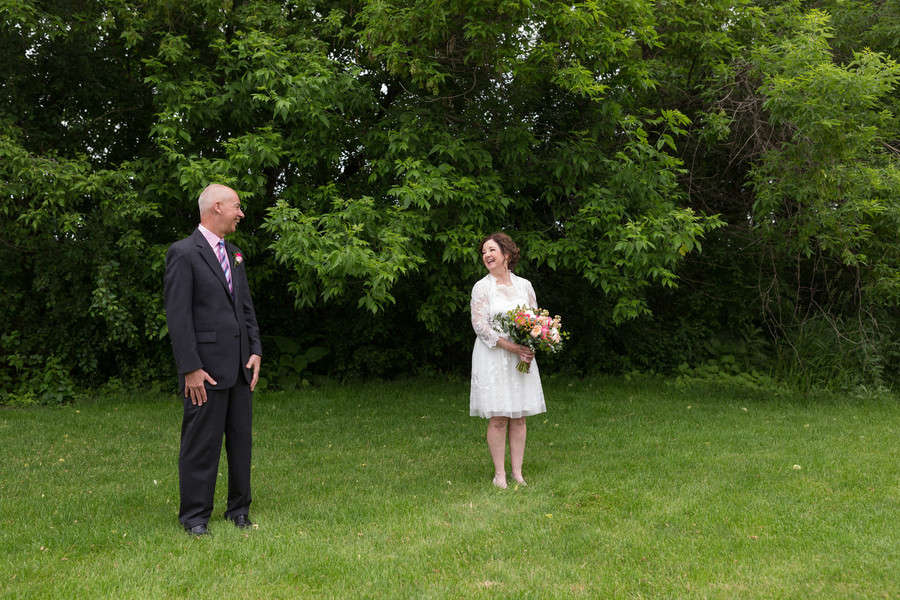 Photographer's Comments: "This adorable couple met in a cycling club – they’ve traveled together and hiked and biked all over the country and world which led to some beautiful details with their photos of traveling all throughout the wedding. They make a great team. This sweet little wedding was amazing – the love for them was so palpable and all the little details celebrating their love for one another were exquisite. They wanted a laid back Sunday afternoon wedding – guests enjoyed a nice lunch, music, games and dancing.  Also, isn’t her tea-length dress amazing?!?! What a gorgeous bride!"