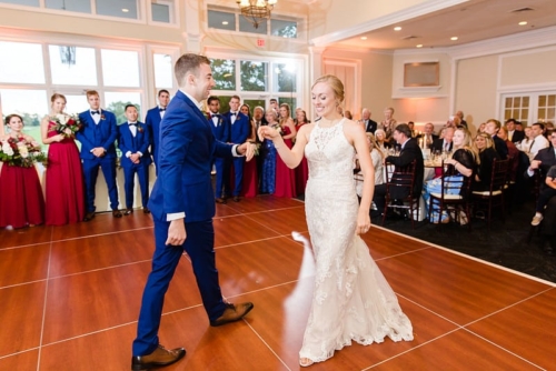 A7: I, the bride, convinced the groom that we should take dance lessons for our first dance. We took 4 lessons to learn some steps that we could incorporate in our dance. For music, we chose the song “Yours” by Russell Dickerson and, while neither of us are gifted dancers, we had so much fun performing the dance in front of our guests on our wedding day. In case you were concerned, no toes or dresses were stepped on during the final performance.