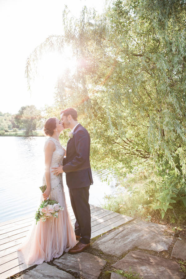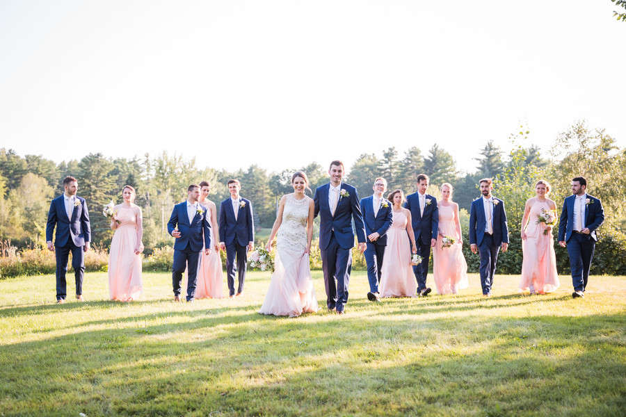 Q: Tell us about your wedding! “Laura has always loved the aesthetics of pale bridesmaid dresses. Once Laura found her blush dress, that became the main color for the wedding. Neither of our families have strong religious our cultural ties, so we felt free to create a celebration that was truly reflective of us. Our relationship started in Maine, and we consider it a second home. It is beautiful, and it felt right to have the wedding there.” Q: Let’s talk wedding decor “The one thing Laura really wanted in the reception space was strung lights. We looked for a decor vendor who could affordably make this a reality.Laura’s mom designed, purchased, and assembled the beautiful center pieces with help from the florist! Q: What were the florals like in your wedding? “In addition to having florals in the bouquets and boutonnieres, we incorporated them into the reception backdrop and center pieces. We kept the arrangements simple. The color of the roses was the most important component. Q: Did you personalize the day in any way? “The ceremony and the dancing!We researched, compiled, and wrote our own ceremony and vows. It took a while, but we were thrilled with the result. Our guests seemed to love it too!We spent a long time (probably too much time) creating a playlist of our favorite dance songs that the DJ used as a launching point. It was perfect. We had so much fun with our guests.” Q: Let’s talk fashion “Ethan’s one request was to wear a blue suit, so we found one that fit well!Laura is petite, so the main goal was to find a dress that didn’t completely swallow her. The non-traditional color was not part of the original plan, but it ended up being something that we loved!” Q: How did you meet? “We met on Colby’s Outdoor Orientation Trip as freshmen in college. We got to know each other better through sitting next to each other in our Introduction to Psychology seminar.Per Laura’s request, Ethan kept the proposal very simple. After we bought a vacuum cleaner and picked up pizza for dinner, Ethan tricked Laura into re-watching the episode of the Office that we had viewed together on our first date. Then he popped the question!” Q: Do you have any advice to share with other couples planning their day? “We were the first in both of our immediate families to get married. There was a lot of expectation and input from all parties. Early on, we made decisions about what components were important to us and made sure that they were included in our wedding. Then, we let everything else go!”