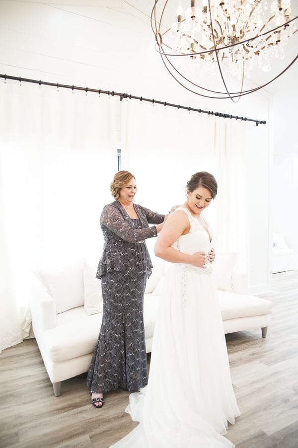 Describe your wedding invitations Made by Saint Merry Paper and Print My invitations were simple and sweet. I wanted a very romantic feel with script font and pastel flowers that were whimsical and very similar to my bouquet and other florals that decorated my wedding. RSVPs were done online on our knot website and included with the invite was a hand drawn map showing the church and reception venue. Describe the wedding dress Many friends recommended Whittington Bridal as the place to find my perfect dress. With a large selection and comfortable pricing, it was the perfect place. I tried on several dresses, but knew I wanted lace on top with some type of netting, and a flowwy bottom. I was able to find just that! It really was the dress of my dreams. Dress Designer: Lis Simon Shoe Designer: Antonio Melani Veil Designer: Beautiful U Bridal Veil & Accessories Jewelry Designer: Givenchy Groom Attire: Men’s Warehouse What was your vision for the wedding? I really didn’t have a strict color scheme for my wedding, but wanted to keep it pretty neutral. Besides some small pops of pink, dark maroon, and lots of greenery, most of my flowers were soft pinks, cream and white. I wanted a whimsical and romantic feeling throughout my wedding, but also wanted contrast with different textures such as metal, concrete, and geometric shapes. Overall, I wanted it to be simple because the backdrop of the pristine, white farmhouse made everything pop. Color palette Light greens, dusty pinks, creams Where was the wedding ceremony? St. Mary Catholic Church in Plantersville, a registered Texas Historic Landmark. This church is a beautiful painted german church built in the 1894 (web original building built in 1894, destroyed by a fire and current building built in 1917). Besides being extremely beautiful with its intricate details, it was important for Zac and I to receive the sacrament of marriage in the catholic church, before God and our families. In doing so, we were able to have my uncle (who was also my sponsor when I was confirmed in the catholic church) officiate our wedding. What types of flowers were used throughout the wedding? Blushing Bride, peonies, quicksand roses, bunny tail, hypericum berries, scabies flowers, hanging amaranths, queen annes lace, thistle, curly willow, eucalyptus leaves Bridal bouquet: Blushing Bride, peonies, quicksand roses, bunny tail, hypericum berries, scabies flowers, hanging amaranths, queen annes lace, thistle, curly willow Bout: blushing bride, scabiosa flower, bunny tail and globe thistle Ceremony: Nothing but the beautiful painted walls of the church! Reception Greenery on back wall behind cake table, with small flowers here and there sage colored table clothes with cappuccino napkins Centerpieces Mixture of silver geometric glass terrariums, grey concrete, and metal holders with small floral arrangements Describe the ceremony We were able to have my uncle (who was also my sponsor when I was confirmed in the catholic church) officiate our wedding and that made our ceremony so special. He was able to tailor the homily entirely to Zac and I (and our families) because of our deep, personal relationship which I find is missing at many weddings. How many Guests did you have? 165 Where was the reception? The farmhouse in Montgomery, Texas. We chose this location because even though it is rustic, the large patio, pristine towering white walls, and perfectly placed topiaries and bushes sharply contrast that feeling. It gave us the perfect feeling of Texas summer night with the sleekness/niceness of a wedding. The amazing bridal sweet, large chandeliers, and anthropology-esque furniture and sitting rooms, totally fit our style to a T. Describe your reception and what made it special Being able to finally bring all of our family and friends together to celebrate our love was the best part of the reception. In such a pretty venue, with floral and design that exceeded my expectations, I was in awe the whole night! It wasn’t hard to have a great time with the awesome music our dj played (exactly what we asked for, and we were very picky about that hehe :)) and drinks flowing the whole night. What was served for dinner?