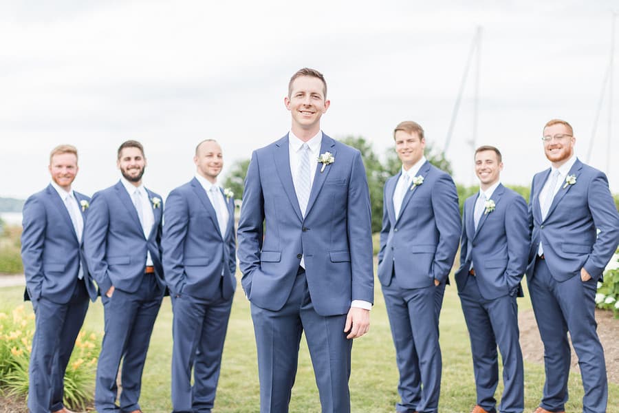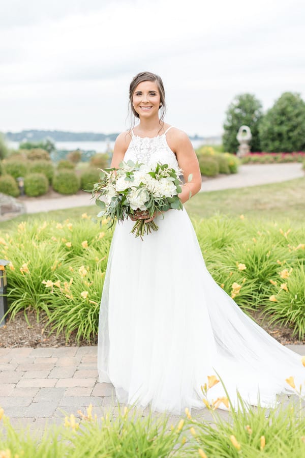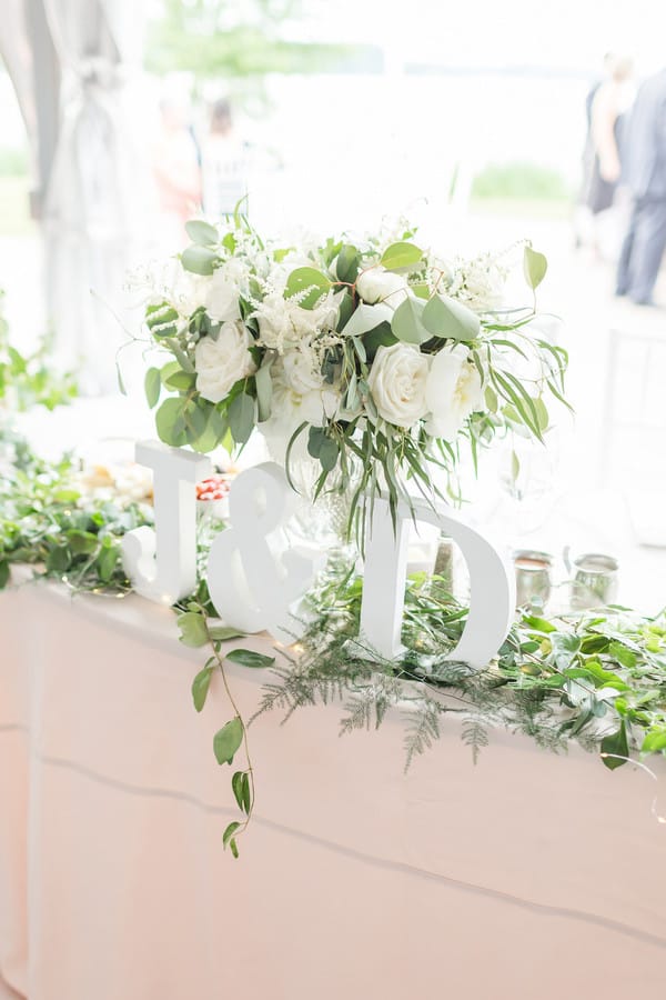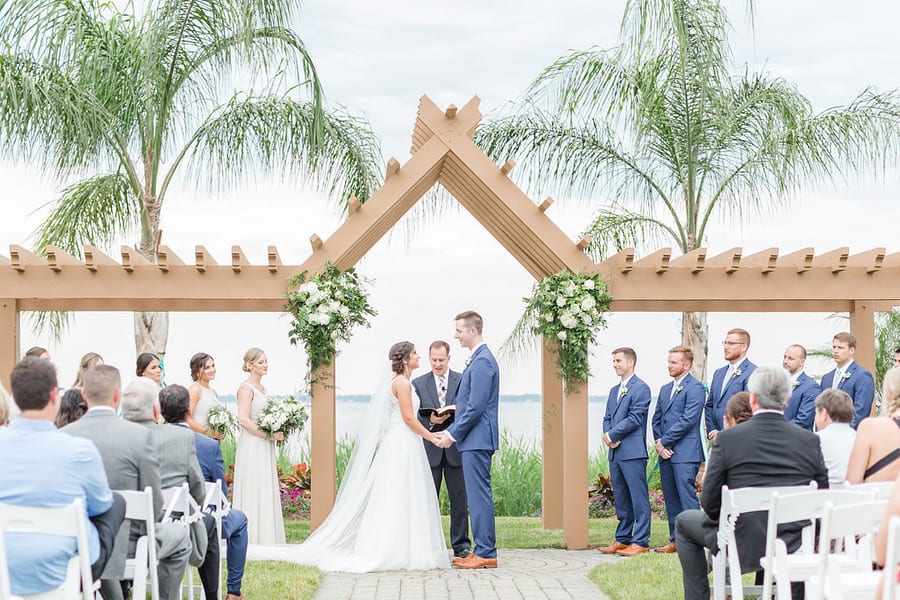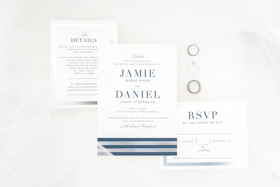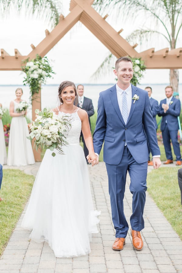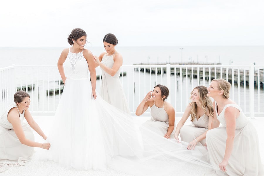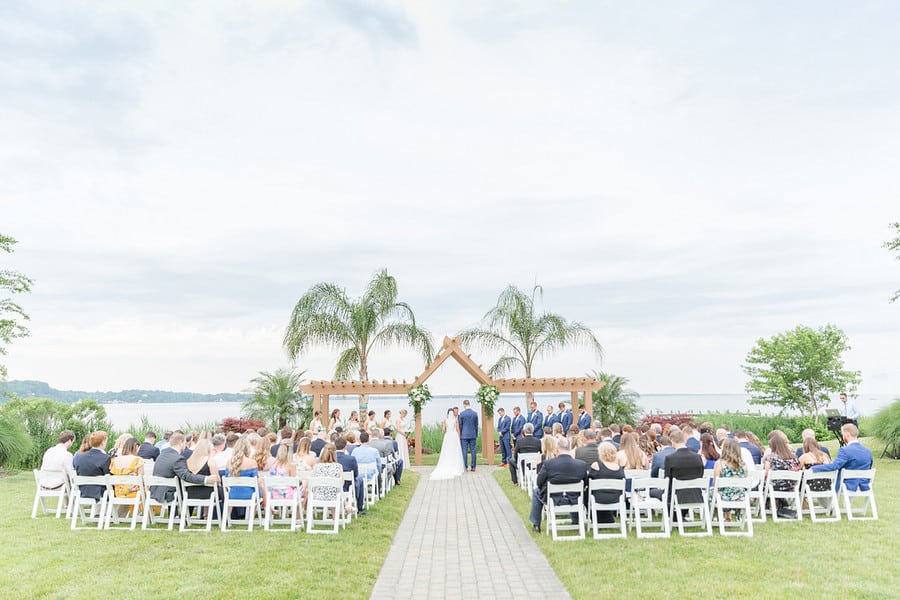 Photographer’s Comments: “Daniel and Jamie are married!! These two tied the knot at Herrington on the Bay overlooking the Eastern Shore and the neutral details and greenery made for a beautiful combination. It was a wonderful celebration!“Here is their love story from Jamie’s perspective!”Bride’s Comments: “Dan and I met on Halloween of our junior year of college at the University of Maryland at a friend’s house party. I remember seeing Dan with his back against the wall, talking to a friend. I recognized him from several of my classes and started to talk to him. After that day, we then started to see each other more during class and began to sit next to each other in a few of them. We started off as friends and then Dan asked me on our first date shortly after the new year. We didn’t end up going on a second date until that summer, but soon after that we made the relationship official. We spent the last year of college together and then both graduated from the University of Maryland. Dan moved home and I immediately started physical therapy school at the University of Maryland Baltimore. One year later Dan started at the same program. On a cold day in March, on the way down to have dinner with my parents, Dan suggested we go to downtown Annapolis along the way. Dan proposed on the Annapolis city dock in the same location where we sat to enjoy ice cream after one of first dates.”Gallery